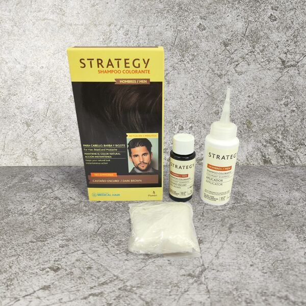 Shampoo Colorante Para Cabello, Barba Y Bigote Castaño Oscuro- Strategy