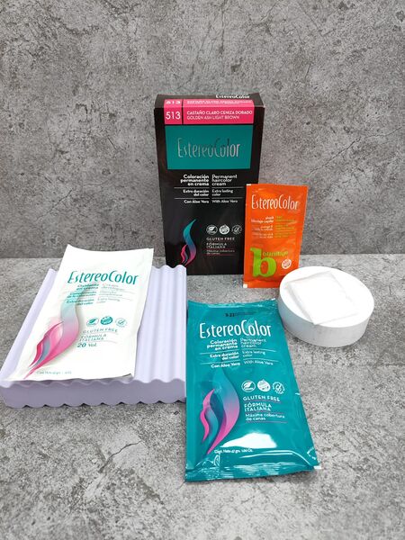 Kit Coloracion Permanente En Crema Tono 513 Castano Claro Ceniza Dorado- EstereoColor