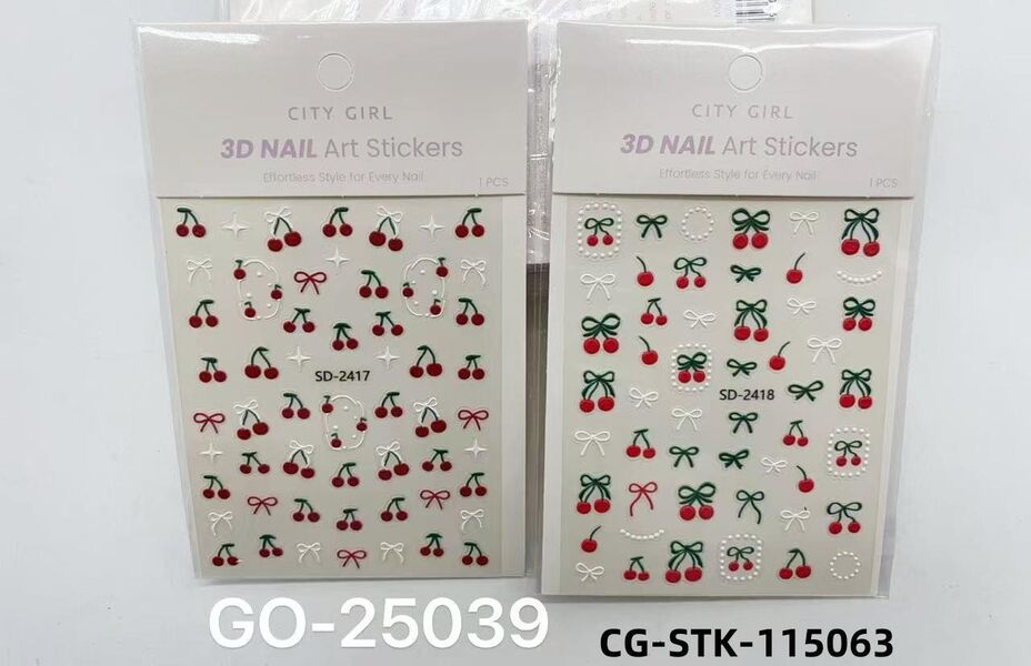 Stickers de cerezas 3D para uñas City Girl