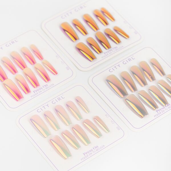 La cantidad mínima para el "Press on nails ballerina efecto cromado City Girl" es 4.