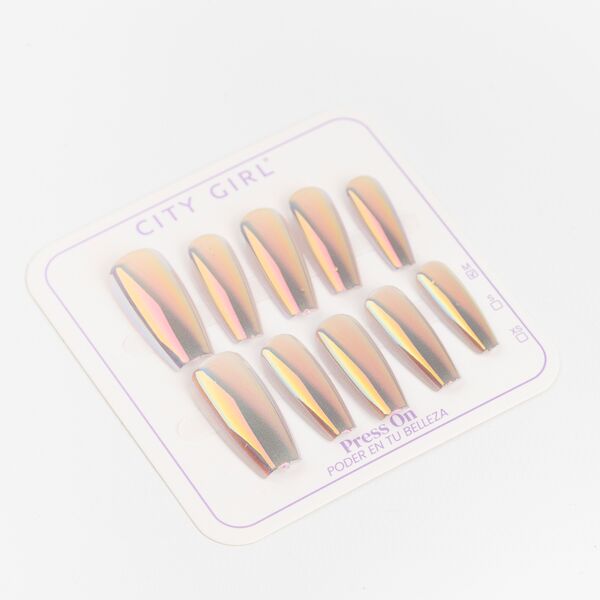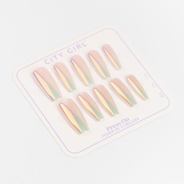 Press on nails ballerina efecto cromado City Girl