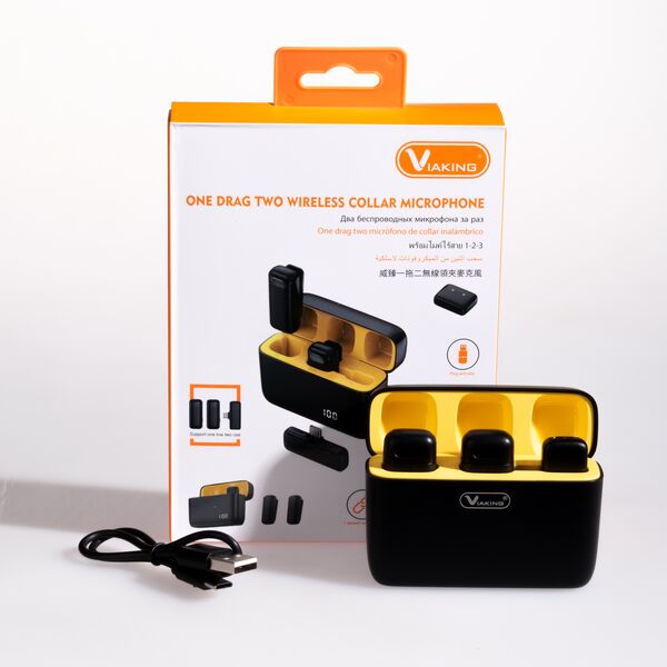 Nuestro micrófono de collar inalámbrico VIAKING, que incluye dos micrófonos y una base de carga para una experiencia de audio sin interrupciones. Diseñado para ofrecer calidad de sonido superior y comodidad de uso, este sistema es ideal para profesionales que necesitan fiabilidad y claridad en sus comunicaciones. Frecuencia de Operación: 2.4Hz Sensibilidad:-26DB Transfer Delay: 15ms Frecuencia: 20-20KHz Radio: 64DBM Distancia: 20m