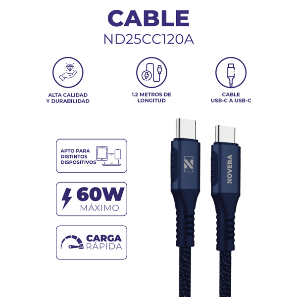 \nLongitud: 1.2 M \nColores: Negro, Gris, Azul \nCapacidad: 3A/60W