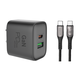 Con el Adaptador Con Cable Tipo USB-C A USB-C 45w, podrás cargar tus dispositivos de forma rápida y segura, sin importar dónde te encuentres. Su voltaje de salida variable te permite adaptar la carga a las necesidades de tus dispositivos, asegurando un rendimiento óptimo en todo momento. También incluye un puerto USB-A de 20W, útil para una amplia variedad de dispositivos, cargando simultáneamente al máximo de su capacidad.