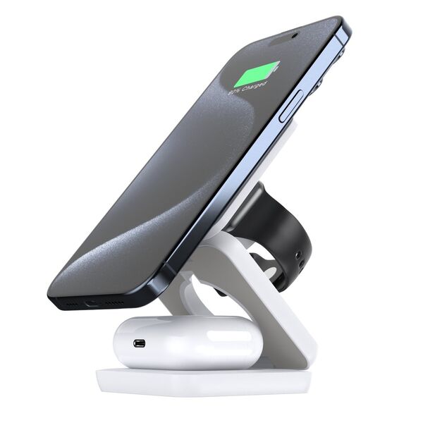 Carga tu teléfono, auriculares y reloj simultáneamente con el Cargador Magnético W900, diseñado para máxima comodidad y eficiencia.
