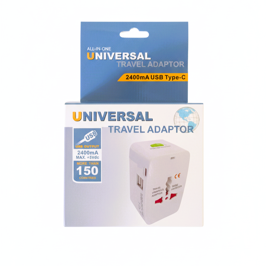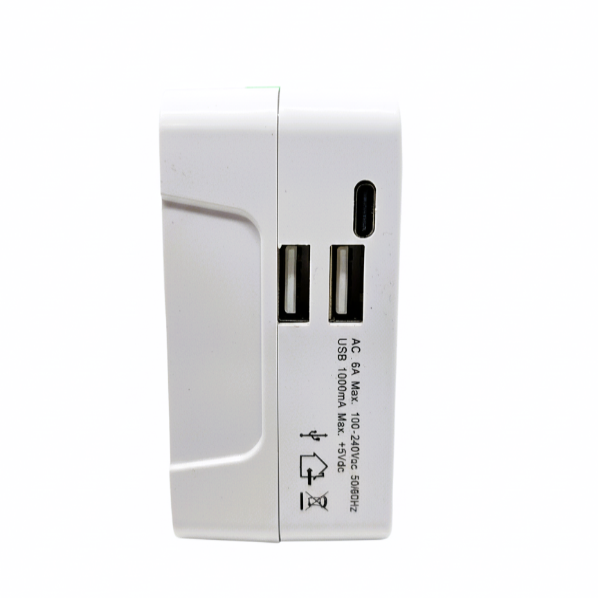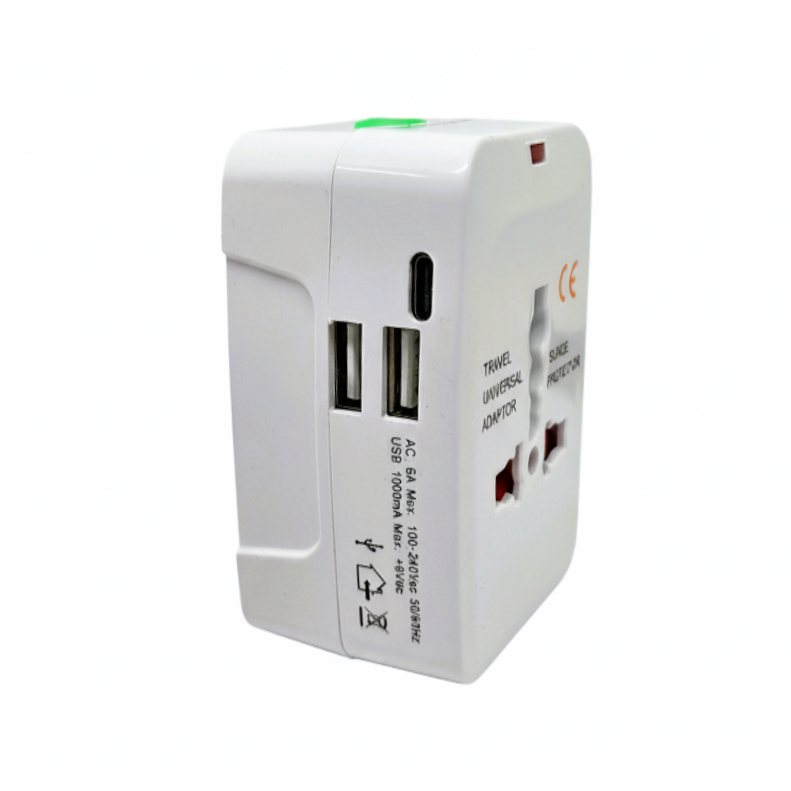 El Adaptador Viajero Universal con 2 puertos USB-A + 1 Puerto USB-C es el compañero indispensable para tus viajes. Con un diseño compacto y portátil, se adapta a más de 150 países incluyendo Europa, América, Asia y Oceanía. Permite conectar múltiples dispositivos de forma simultánea: smartphones, tablets, cámaras, auriculares y más.
