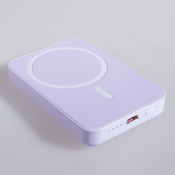 El Power Bank 5,000 mAh con carga inalámbrica es tu compañero perfecto en colores blanco, violeta y rosa. Con entrada PD18W, salida PD20W y una potente salida inalámbrica de 15W, carga tus dispositivos de manera rápida y cómoda, sin cables. ¡Siempre listo para mantenerte conectado!
