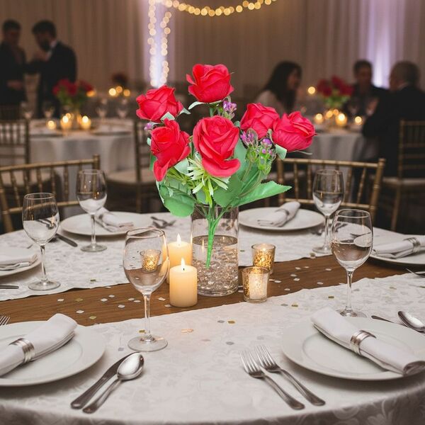 Dale vida y color a tus espacios con estos hermosos ramos de rosas artificiales de aspecto realista. Ideales para decoración del hogar, eventos, vidrieras o centros de mesa.