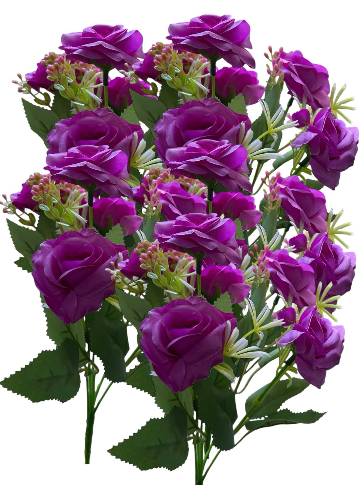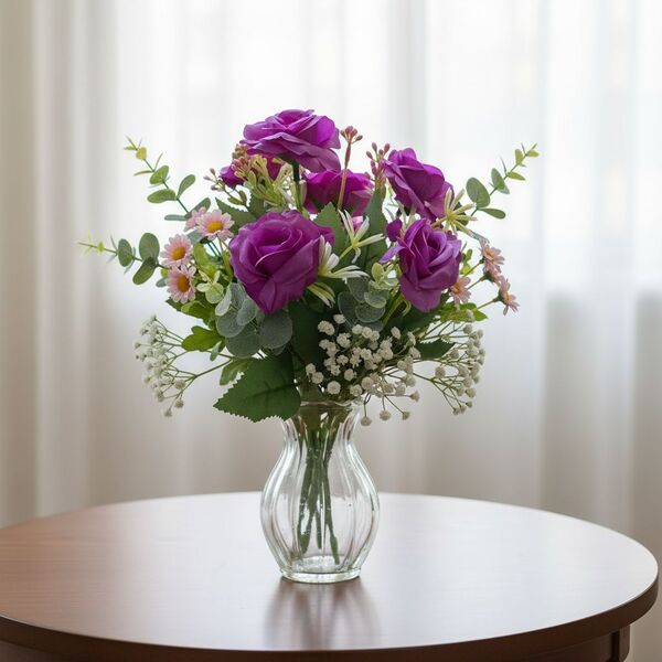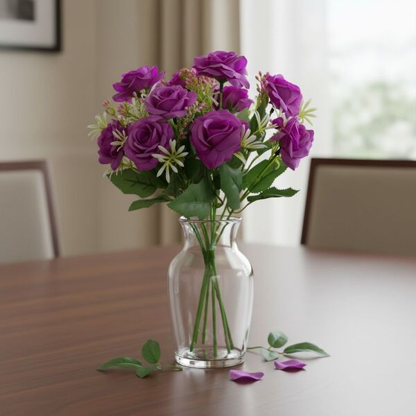 Dale vida y color a tus espacios con estos hermosos ramos de rosas artificiales de aspecto realista. Ideales para decoración del hogar, eventos, vidrieras o centros de mesa.