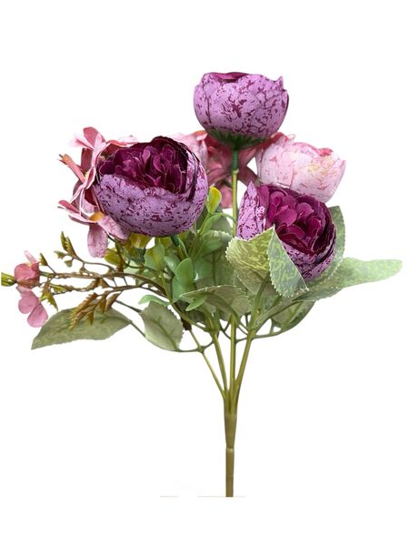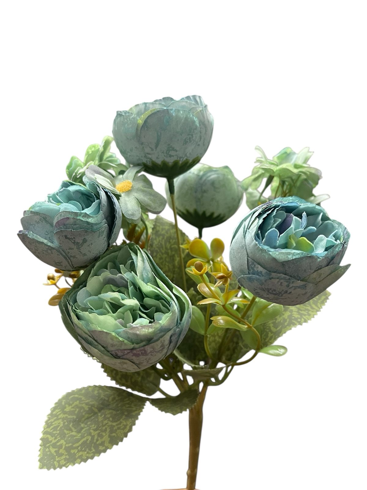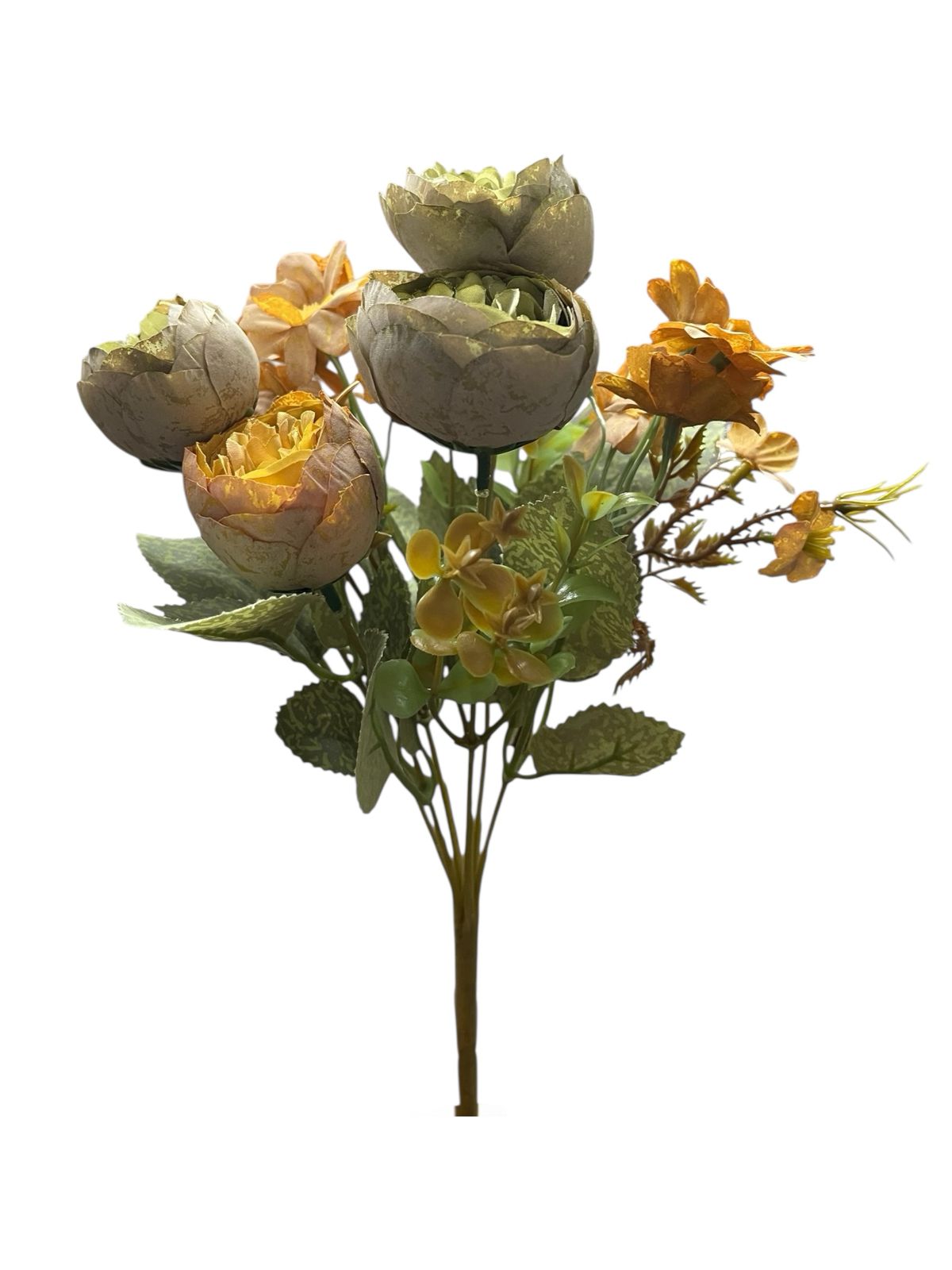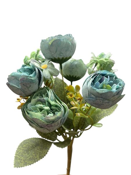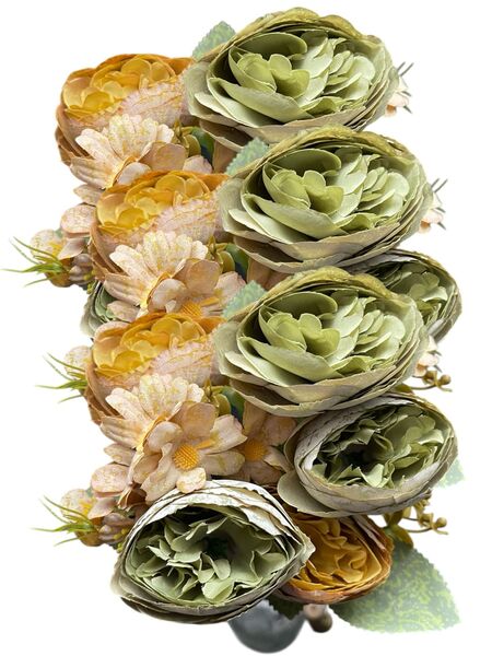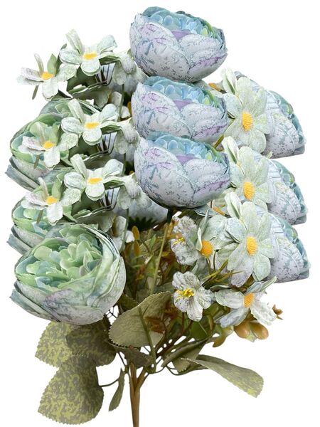 Ramo flores artificiales camelias satinados premium y margaritas decoración hogar y eventos.Medida: 30cm
