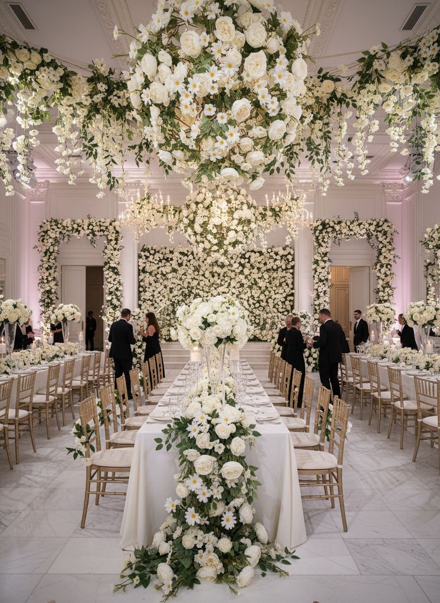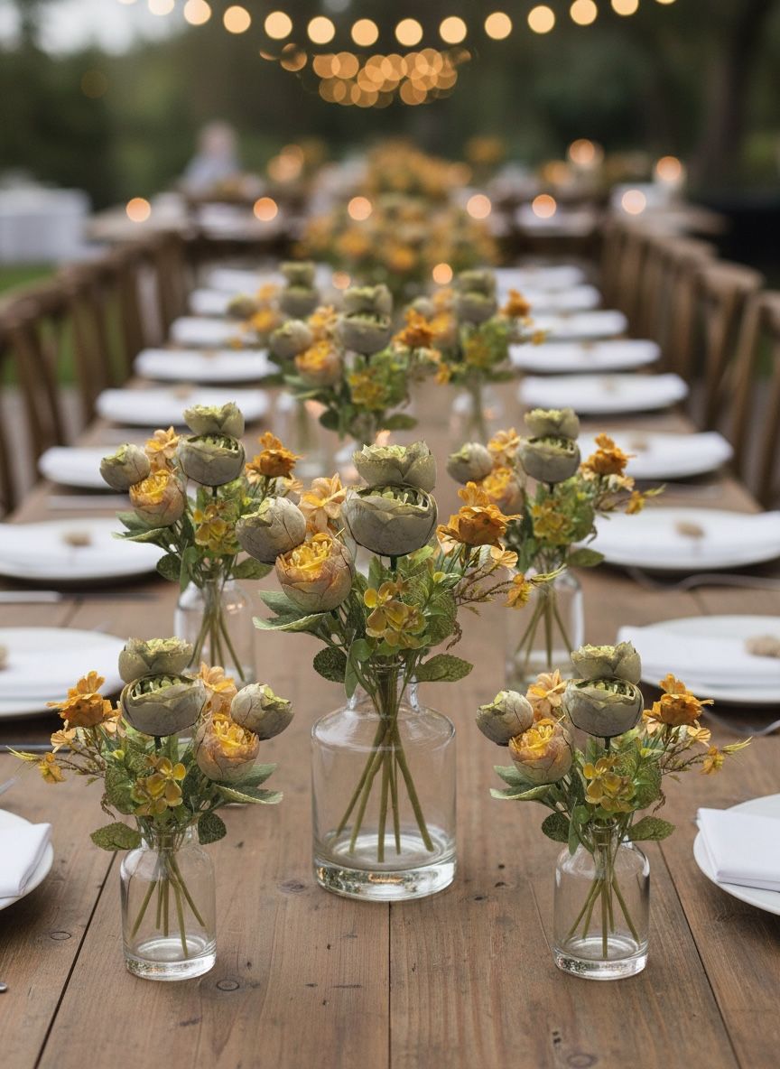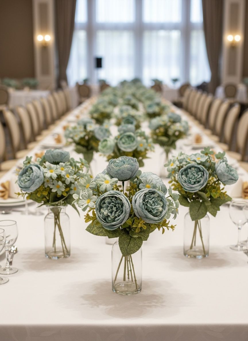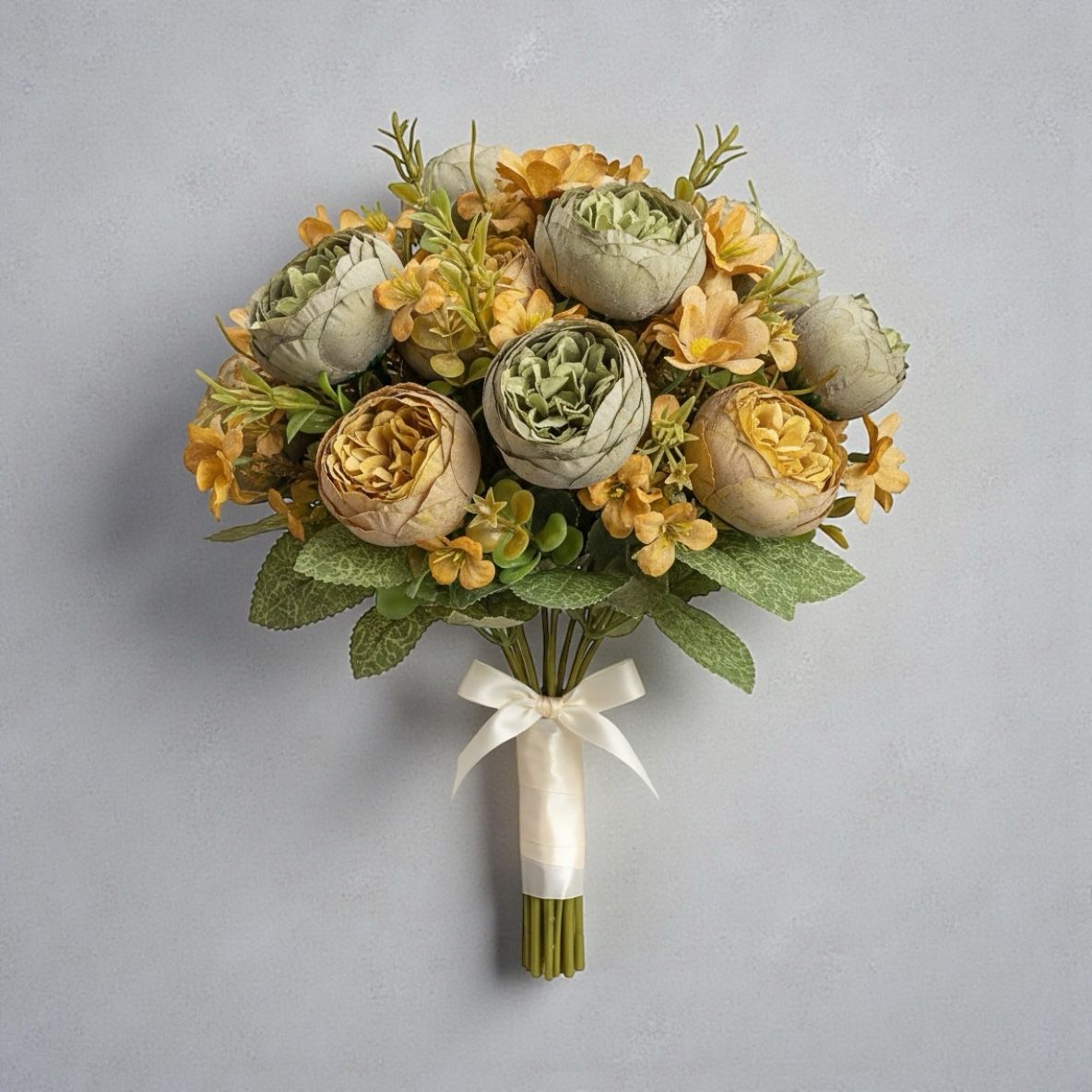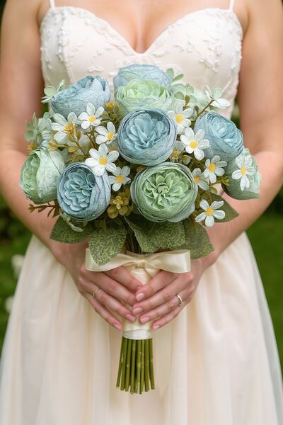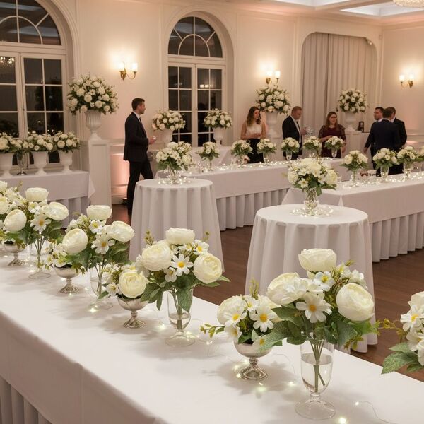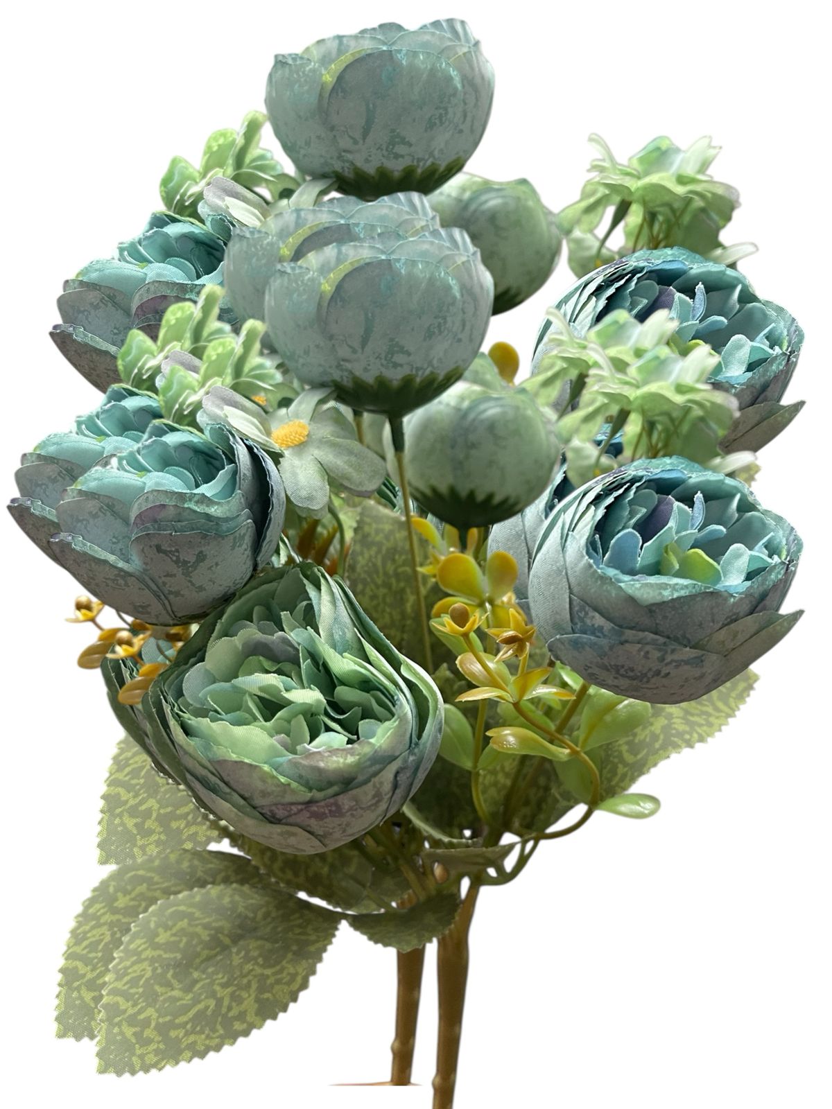 Transforma cualquier espacio con este hermoso ramo de flores artificiales tipo camelia con tela premium y margaritas, ideales para decoración de interiores, eventos, bodas, quinchos, livings, locales y mesas principales.