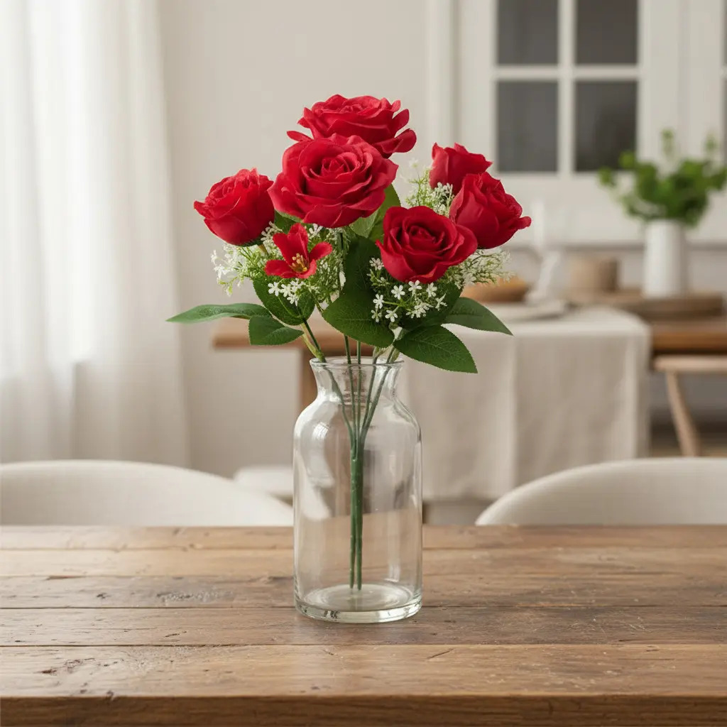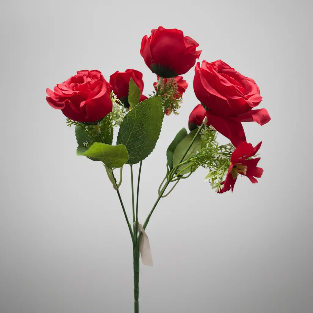 Ramos rosas x5 rosas y 3 florcitas de relleno Rojo