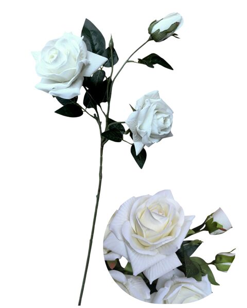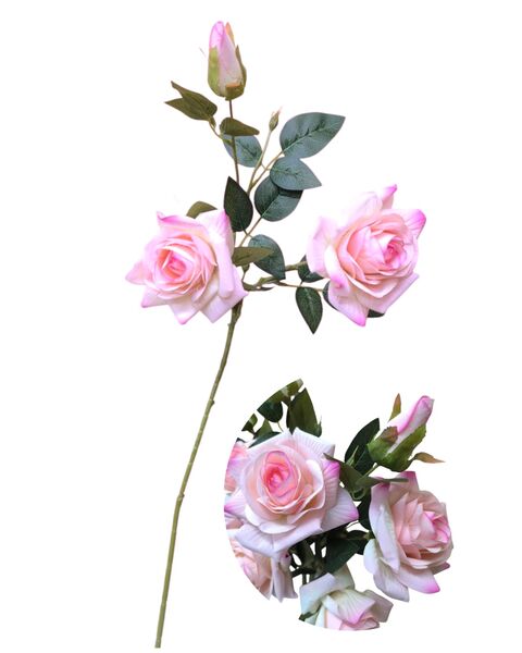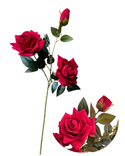 Vara rosa artificial viene 2 rosas + 1 pimpollo