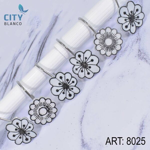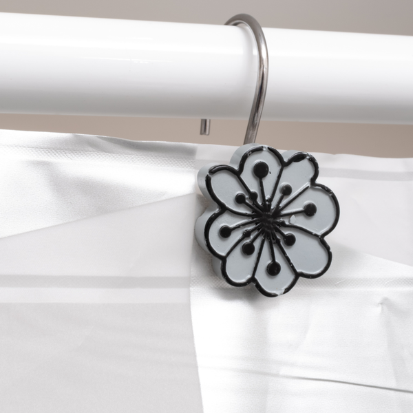 Gancho Para Cortina De Baño Flor Blanco Y Negro