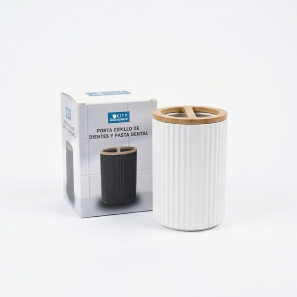 Porta cepillo y pasta dental rayado