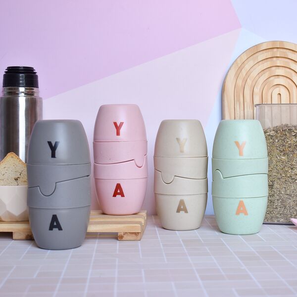 Descripción: Yerbera y azucarera encastrables Material: Plástico Proceso: Estampado con serigrafia Medidas: 15 cm de alto x 5,5 cm de diámetro Observaciones: Ambas con traba deslizante para que no se vuelque el contenido