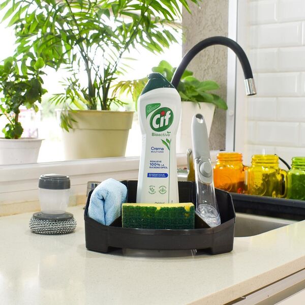 Descripción: Organizador plástico rígido de mesada con 4 compartimientos.