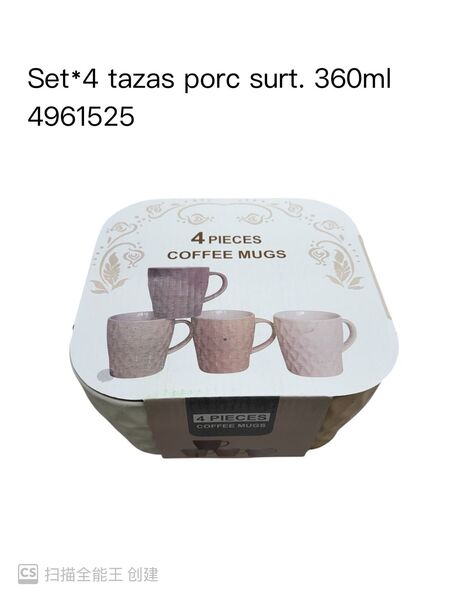 Set x4 Tazas Porc Surt.360ML 4961525