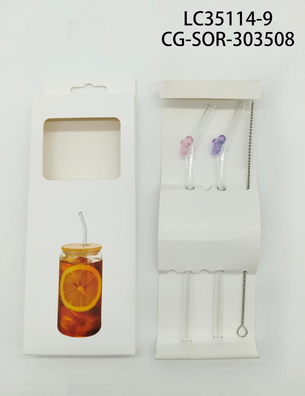 Set de sorbetes de vidrio reutilizable con cepillo mariposa City Girl
