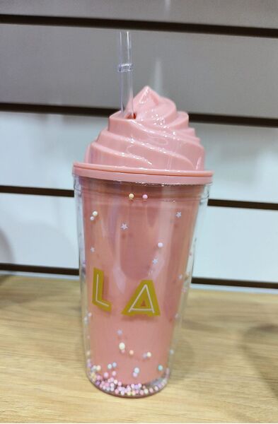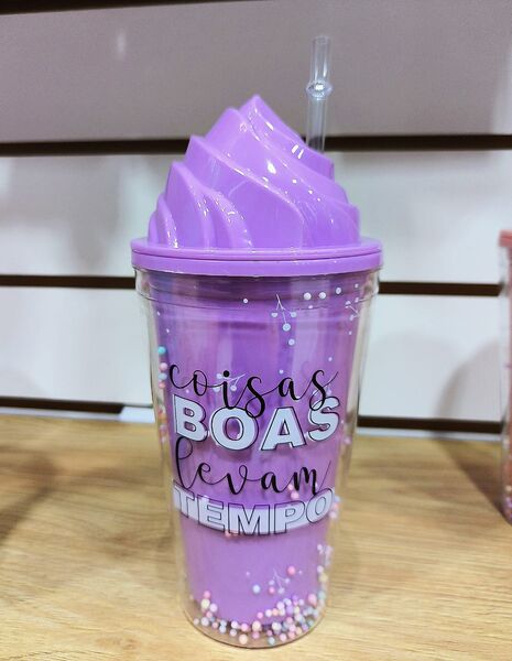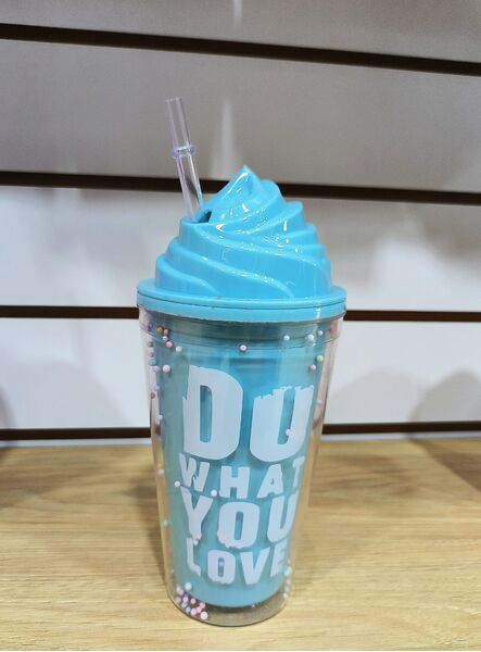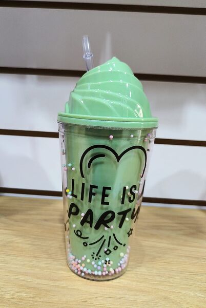 Vaso de plasctico con doble pared helado con pelotitas de colores + sorbete