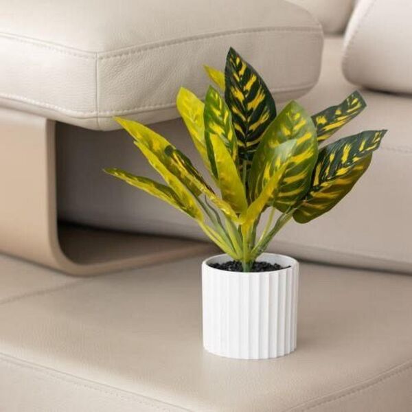 MACETA CON BASE TRAMADA Y PLANTA 28 CM