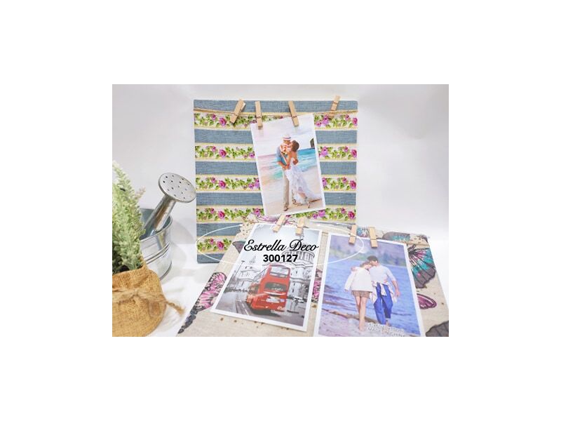 Portaretratos tipo bastidor con tela estampada.