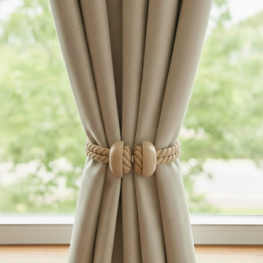 Sujetador de cortinas circulares de madera con imán