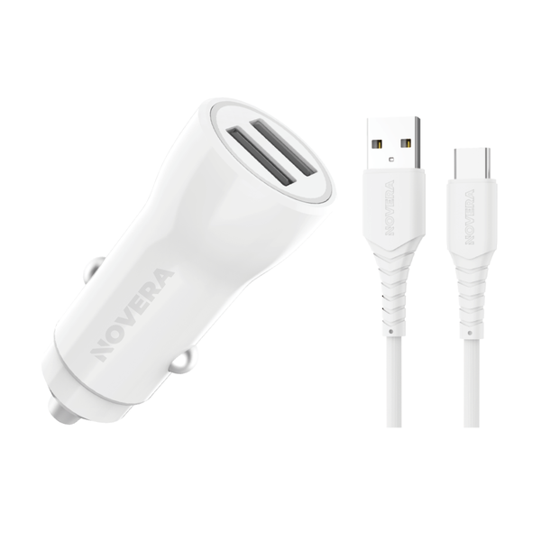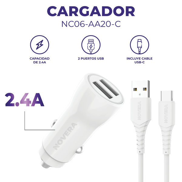 Cargador Para Auto Doble Puerto + Cable Usb-a A Usb-c / 12w / BL/ 100p