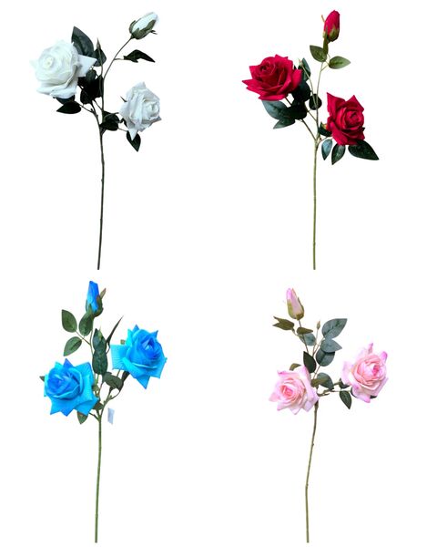 Vara rosa artificial viene 2 rosas + 1 pimpollo
