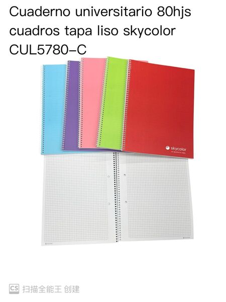 Cuaderno Universitario 80hjs Cuadros Tapa Liso skycolor CUL5780-C