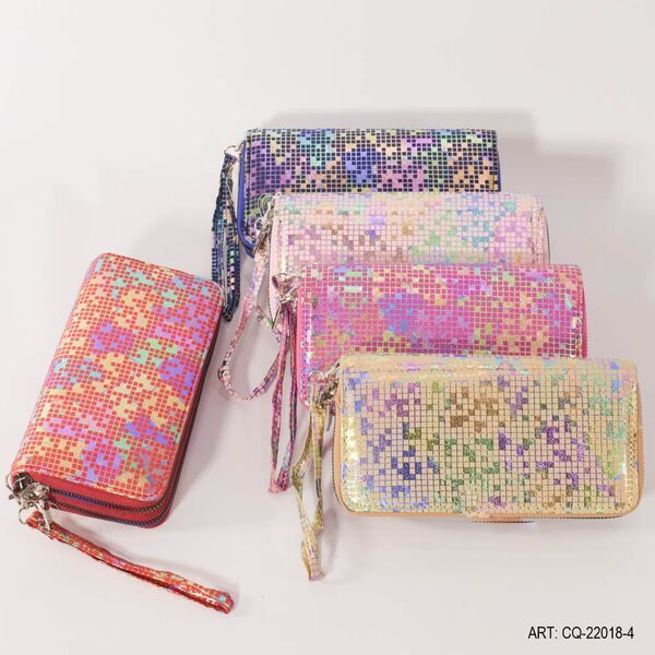 Billetera 2 Cierres Tornasol Con Terciopelo Y Tira (Grande)